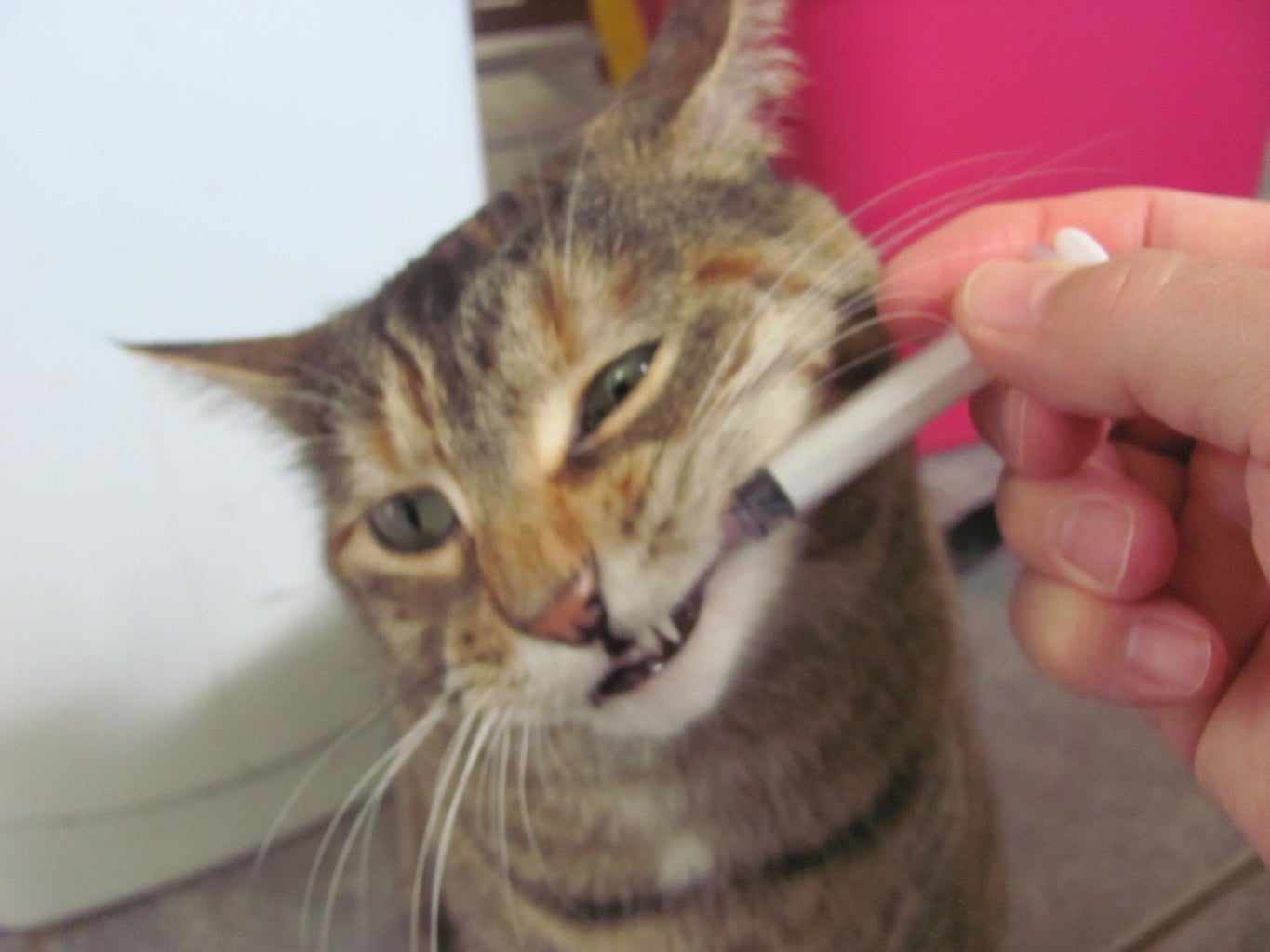 Monitor your cat for the next couple minutes to insure heshe ingested the liquid medicine and didnt. Find a quiet well-lit area where your cat can feel secure. Pick up the syringe in your free hand and rest the hub of the syringe the open.